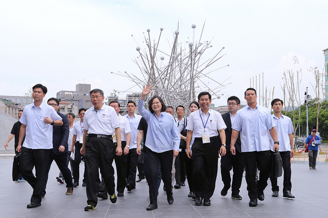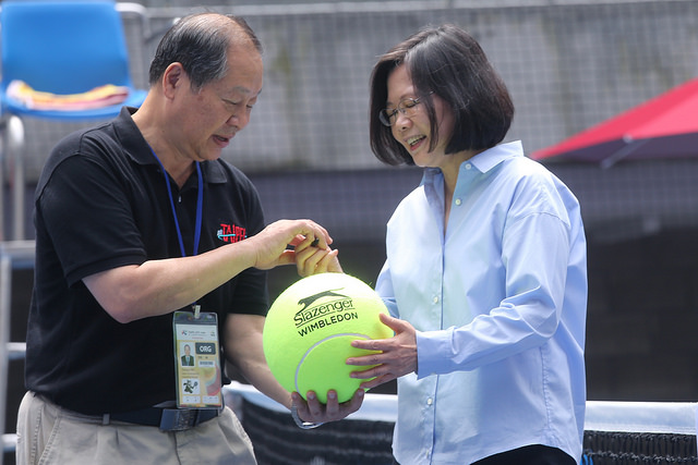 2017世界大學運動會今年8月將在臺北舉行,蔡英文總統今(12)日在臺北市長柯文哲、教育部長潘文忠、體育署長林德福陪同下,前往「臺北市網球中心」視察。