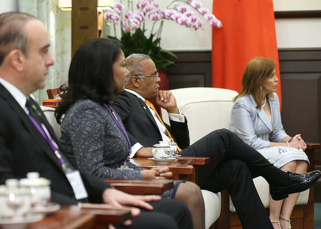 訪賓一行由外交部次長劉德立陪同,前來總統府晉見總統,總統府秘書長吳釗燮也在座。