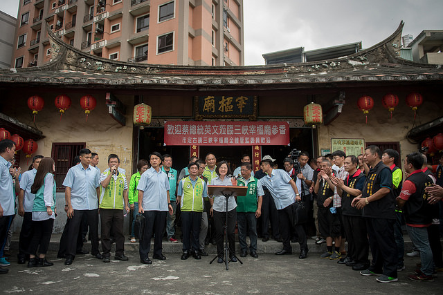 蔡英文總統今(23)日下午出席「三峽宰樞廟」揭匾活動,強調「臺灣在進步,新北不缺席」,政府會透過前瞻基礎建設計畫,加快新北市進步的腳步,希望民眾能大聲說出支持建設臺灣、支持國家進步的心聲。
