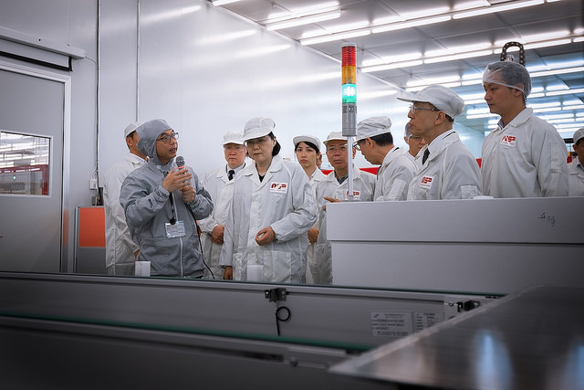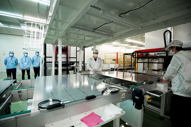 總統抵達後,首先聽取由該公司董事長洪傳獻所做公司營運介紹簡報,瞭解該公司在臺灣綠能產業所做努力與成果;隨後總統特別穿著無塵衣,進入無塵室實地參觀太陽能電池相關產品生產線,瞭解生產情形及現場人員作業狀況。