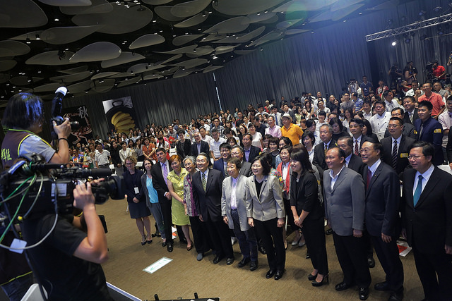 最後,總統與行政院農業委員會主任委員林聰賢、交通部觀光局局長周永暉、桃園市市長鄭文燦、新竹市副市長沈慧虹與天下雜誌總編輯吳婉瑜等人,共同為本次「幸福臺灣味」發表會暨論壇進行啟動儀式。