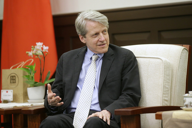 總統致詞時首先感謝席勒教授能夠來到臺灣。席勒教授是諾貝爾經濟學獎得主,也是房價指數的權威。他所建立的Case-Shiller home price indices,更是國際上最重要的房價趨勢參考資料。總統表示,無論是不動產學界或實務界,都非常期待他的演講,也希望能夠藉此機會,向席勒教授請益。