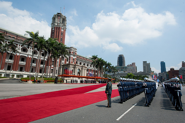 軍禮歡迎儀式於上午10時在總統府前廣場舉行,在鳴放21響禮炮、演奏兩國國歌及閱兵後,蔡總統與卡提斯總統分別致詞。