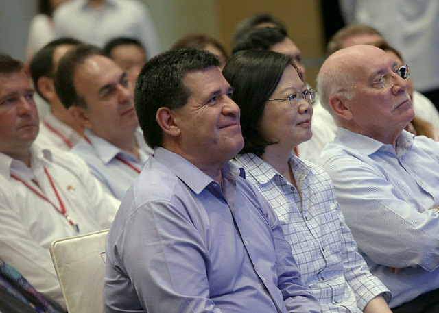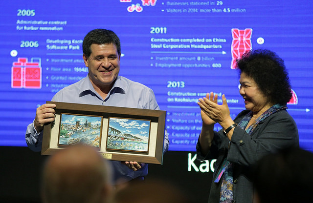巴拉圭共和國卡提斯(Horacio Cartes)總統率團來訪,蔡英文總統今(13)日特地陪同卡提斯總統一行至高雄市參訪高雄展覽館暨亞洲新灣區,希望透過在地建設之旅,讓訪團更加瞭解臺灣發展現況,增進兩國的交流與瞭解。