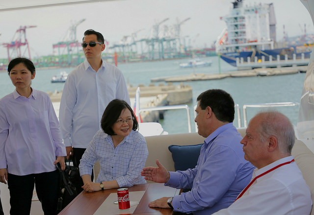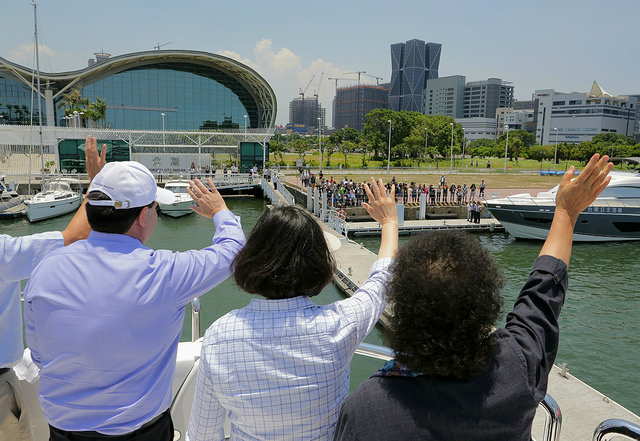為實際瞭解亞洲新灣區建設現況,兩國總統隨後步行至亞灣碼頭搭乘遊艇,途中瀏覽港區風光及眺望新創藝文基地「駁二特區」、推動高雄會展產業的「高雄展覽館」、國際觀光門戶「高雄港埠旅運中心」、港灣新地標「海洋文化流行音樂中心」、拓展數位多媒體閱讀的「高雄總圖書館」,以及結合港灣遊憩與城市運輸功能的「高雄環狀輕軌」等當地重大建設,共同見證高雄近年來的轉型與突破。