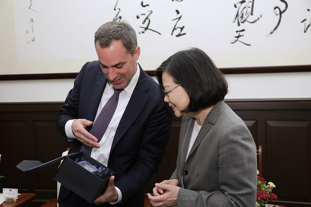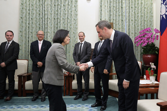 訪賓一行由經濟部次長楊偉甫及德國在臺協會副代表施碧那(Sabrina Schmidt-Koschella)陪同,前來總統府晉見總統,總統府秘書長吳釗燮及國策顧問何美玥也在座。