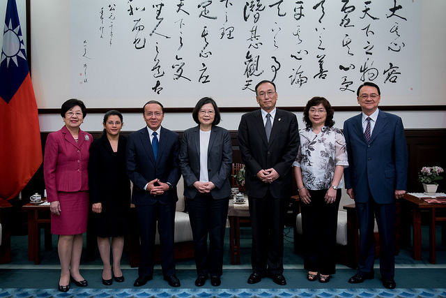 訪賓一行由外交部次長劉德立、薩爾瓦多駐臺大使錢曾愛珠陪同,前來總統府晉見總統,總統府秘書長吳釗燮也在座。