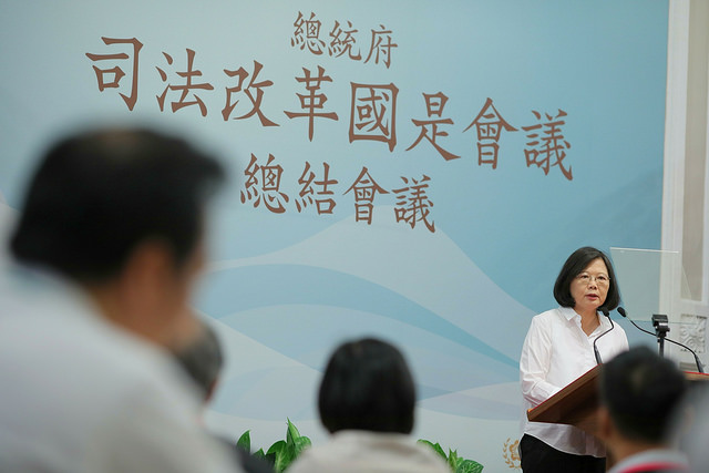 總統府司法改革國是會議總結會議今(12)日於總統府召開,由召集人蔡英文總統親自主持。總統致詞除說明國是會議落實公開透明、人民參與已獲致初步成果,同時也強調,未來在形成法案的過程中,政府會持續諮詢各界意見,讓司法改革的內容更加完善周延。