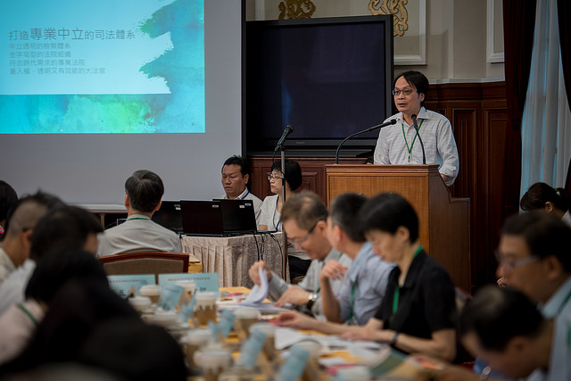 最後,有關審判制度的改革,我也要藉這個機會講幾句話。我了解在這個議題上,大家對於參審或是陪審,還有很多不同的見解,分組會議並沒有形成結論。