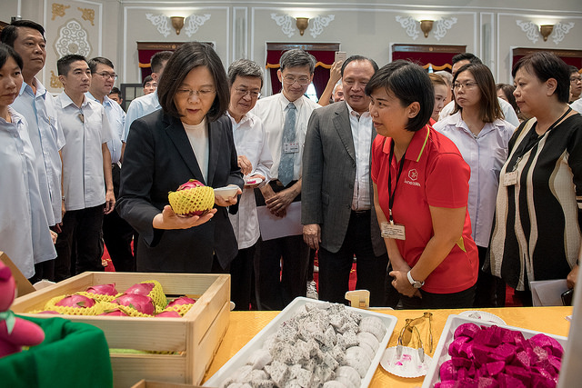 總統指出,今年的家庭日,同仁們的眷屬除了來總統府參觀及看表演,主辦單位還特別精選十幾樣農特產品,希望讓大家多了解臺灣農業轉型的成果,並給臺灣農產品更多支持。