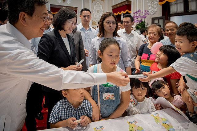 今(18)日是總統府一年一度親子同歡的家庭日,蔡英文總統與陳建仁副總統上午一起出席活動,與總統府及國家安全會議的員工及眷屬話家常並合影,總統也對於同仁們這段時間以來承擔更多的任務,表達肯定與感謝之意。