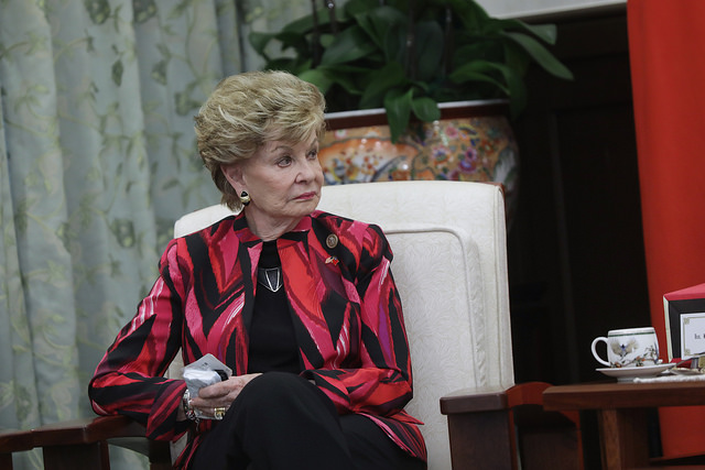 總統致詞時首先向訪賓表達最誠摯的歡迎。她說,多年來,因為有許多理念相近朋友的努力和支持,臺美之間建立了非常深厚的夥伴關係。特別是魏特曼主席及博達悠(Madeleine Bordallo)議員,長期以來對於臺美軍事合作的支持,以及亞太區域的和平和穩定,扮演著重要而關鍵的角色。而美國在亞太區域的軍事部署,也展現了臺美雙方互助互惠的夥伴關係。