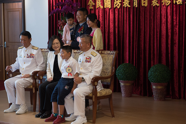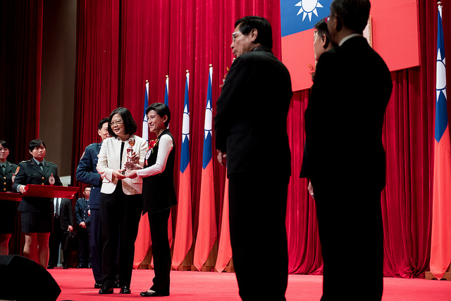 隨後,蔡總統與得獎者及眷屬們一一合影留念。包括國家安全會議秘書長嚴德發、副秘書長陳文政、國防部參謀總長李喜明、文化部長鄭麗君及嘉義市長涂醒哲等亦出席是項活動。