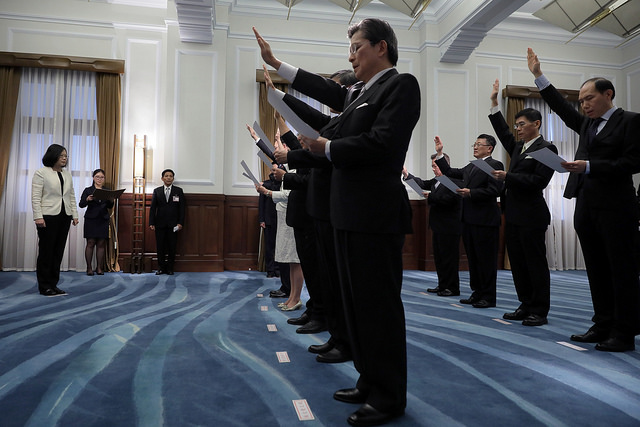 蔡英文總統今(31)日下午主持「新任行政院政務人員及駐外大使宣誓典禮」。