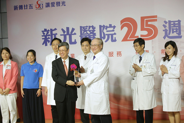 副總統除親頒傑出團體獎獎座予新光醫院之國際醫療團體,也與新光集團董事長吳東進、新光醫院院長侯勝茂、監察院院長張博雅、衛生福利部部長陳時中、臺北市市長柯文哲及新北市副市長侯友宜等人共同切蛋糕,祝賀新光醫院25週年生日快樂。