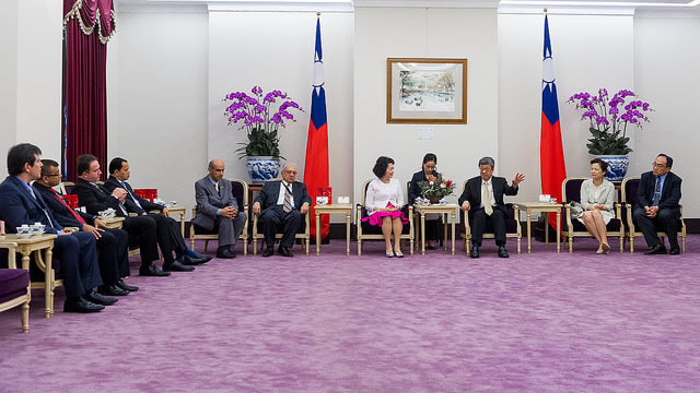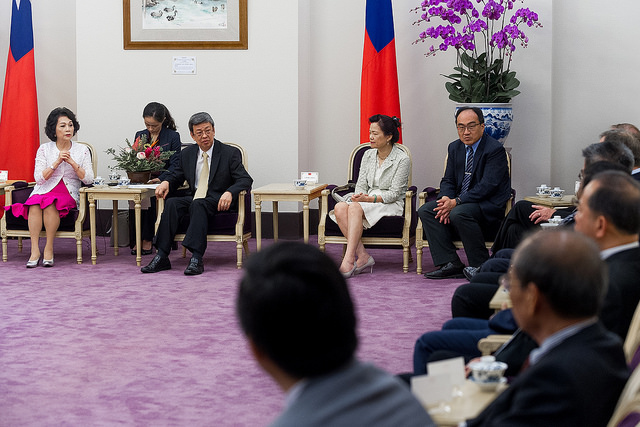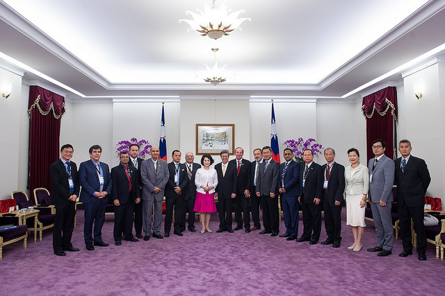 訪賓一行由「世界資訊科技暨服務業聯盟」會長邱月香率領,前來總統府拜會副總統,經濟部次長王美花也在座。
