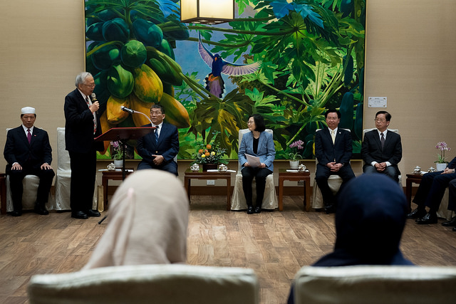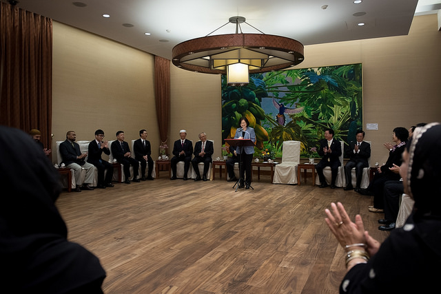 總統強調,穆斯林是我們重要的夥伴,更是推動新南向政策不可或缺的力量。新南向政策的目標就是推動多元的文化交流和合作。「在座各位教親,就是臺灣跟伊斯蘭世界的橋梁」。她期待,未來能有更多人加入,一起來把橋搭得更大、更長,讓更多臺灣民眾和穆斯林朋友們,走上這座橋來交流、分享,增進彼此的情誼。