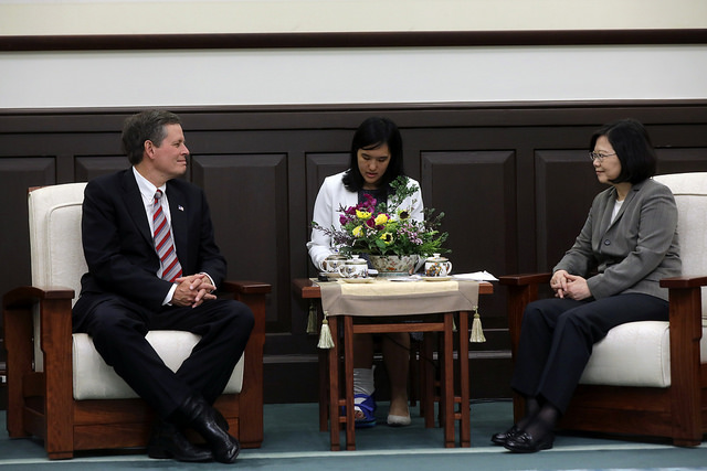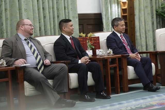 訪賓一行由我駐美國代表處代表高碩泰大使、外交部次長章文樑及美國在台協會台北辦事處處長梅健華(Kin Moy)陪同,前來總統府晉見總統,總統府秘書長吳釗燮也在座。