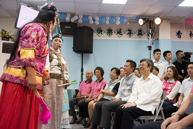副總統抵達後首先聽取香村社區發展協會理事長葉國文介紹該社區推動長照之具體成果,隨後欣賞社區長輩們的歌仔戲「老胡的純情曲」演出,現場氣氛歡愉溫馨。