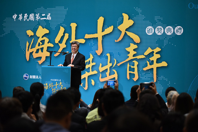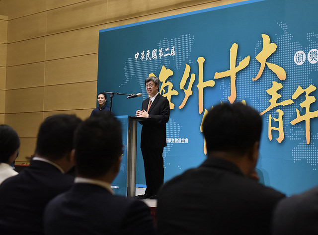 副總統致詞時表示,非常榮幸受邀參加由海華文教基金會舉辦的「中華民國第二屆海外十大傑出青年頒獎典禮」,他看到得獎人的資料時,感覺非常振奮,因為在全世界各個角落,都有來自臺灣的優秀青年朋友,發光發熱、嶄露頭角。大家的表現讓全世界看到臺灣,瞭解臺灣是可以培育人才的地方。