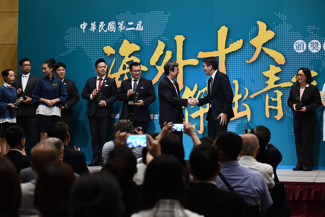 副總統指出,本屆海外十大傑出青年的得獎者,在各個領域都有傑出的表現,真是臥虎藏龍。他細述得獎者的事蹟,在農業方面,彭士豪先生在馬來西亞發展綠色農業,協助降低污染並改善土質、增進生產,更協助同業進行農業再教育,對當地的農業發展貢獻良多。在政治領域部分,李崇維先生是南非首都普勒托利亞市首位臺裔市議員,協助南非警方防止博弈場所詐騙及搶案、降低犯罪率,也增進臺灣與南非的雙邊關係;而劉昱婷女士則是澳大利亞維多利亞州白馬市首位亞裔女市議員,在當地積極拓展臺灣的能見度,並盡力推動臺澳之間的國民外交。相信在兩位的持續努力下,必能促進臺灣與這兩個國家的交流與互動。此外,在醫療專業上,陳玲黛女士負責監管美國醫院處理心血管疾病治療的作業程序及安全規範,為美國的病患作最嚴謹的把關;洪維謙先生在美國研究發現癌細胞的轉移機制,主導數項重大罕病基因發現計畫,讓人類對抗癌症疾病又邁進了一大步。他期勉得獎人努力再努力,為提升人類的健康做出更多的貢獻。