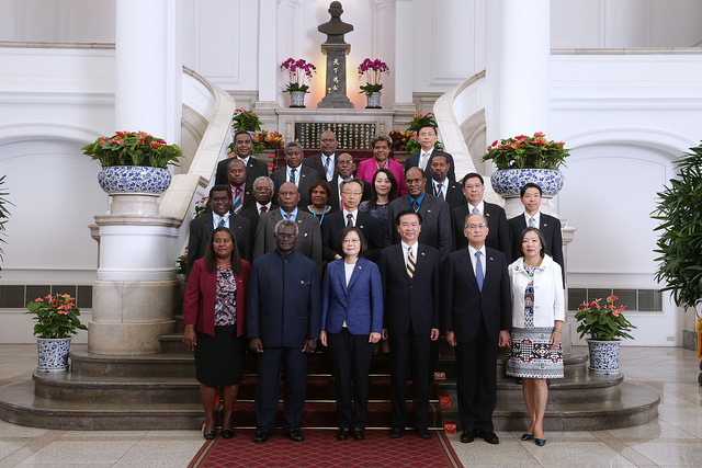 訪團一行由外交部長李大維伉儷、我駐索羅門群島大使羅添宏伉儷及索國駐我大使王哲夫(Joseph Pius Waleanisia)陪同,前來總統府晉見總統,總統府秘書長吳釗燮也在座。