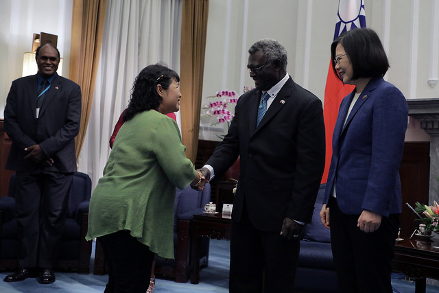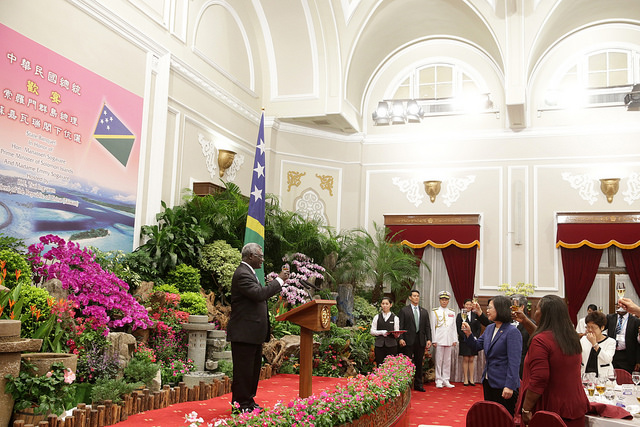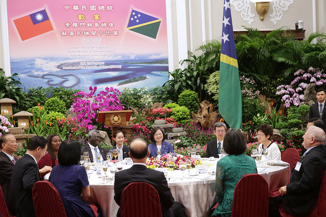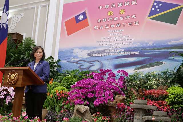 蔡英文總統今(26)日晚間偕同陳建仁副總統伉儷在總統府以國宴宴請索羅門群島總理蘇嘉瓦瑞(Manasseh Sogavare)伉儷暨訪問團成員,除強調透過「親身經歷,親自體會」,推動踏實外交,並期盼臺索在互惠互助的精神下,深化交流與合作,共創兩國人民福祉。