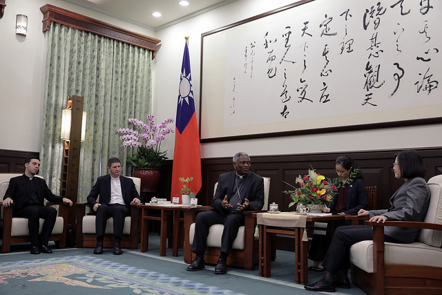 蔡英文總統今(28)日下午接見教廷「促進整體人類發展部」部長涂克森(Peter Turkson)樞機主教一行,除說明臺灣與教廷雙邊合作與交流,並強調未來將持續與教廷站在同一陣線,共同促進亞太地區的和平穩定發展。