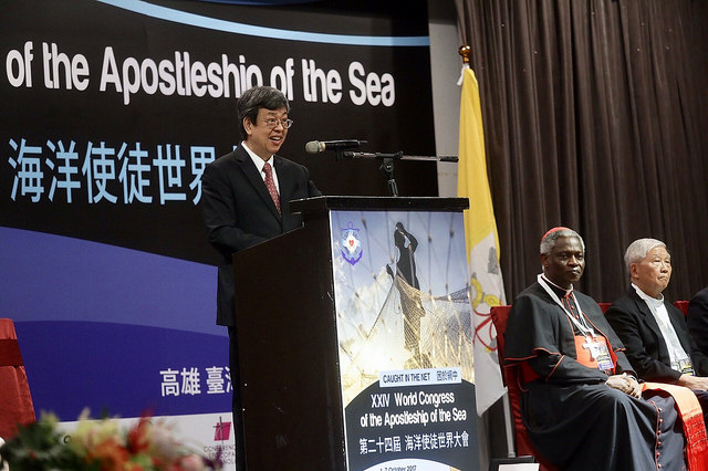 副總統致詞時表示,非常榮幸能夠參與此次大會。高雄是全世界最佳國際港之一,也是各國漁船熱門的補給站,因此,在此地舉辦海洋使徒世界大會,非常合適。