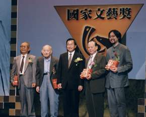 今天的主角,當然是四位得獎人,他們分別是文學類的葉石濤先生、美術類的王攀元先生、表演藝術類的賴聲川先生及許王先生。他們的生平事蹟和藝術成就,各位都已耳熟能詳。不論年齡,但是投注在藝術領域的時間和心血,絕對超出我們的想像,才累積出這麼可觀的成績,在眾多的藝術文化工作者中脫穎而出,成為國家文藝獎的得主。他們的得獎是實至名歸,值得肯定,這是本人首先要予以推崇與敬佩的地方。
