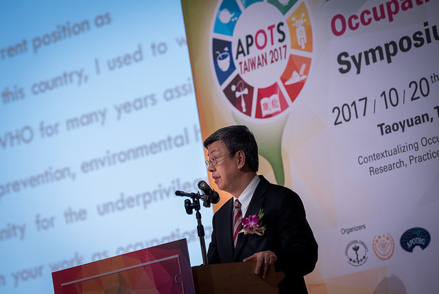 副總統說,他在就任之前,曾有機會以「世界衛生組織」流行病學專家的身分,協助各國處理疾病預防、環境病原控制,並為增進弱勢民眾的健康照護,以及人道救援等工作而努力。這些工作與職能治療師在預防及延緩失能、環境改造、失能者人權倡議、職能正義實踐的專業作為,實有異曲同工的效果,都是在為人類的健康福祉做出奉獻。