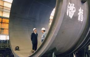 看到「中船」今天如此傲人的成就,很難想像在一年半以前,很多人不看好前景,「中船」幾乎瀕臨倒閉。至九十年十二月底,當年虧損將近三十一億元,累計虧損約一一o億八千萬元,整個資本額差不多全賠光了。在各界高度的關切下,「中船」毅然進行「再生計畫」,從精簡人事、全面減薪及政府增資,三管其下,大幅改善「中船」的體質和競爭力。「中船」也沒有辜負大家對它的期待,於「再生計畫」實施的第一年,就轉虧為盈,從八十八下半及八十九年虧損六十七億元、九十年虧損三十一億元,到九十一年盈餘三億五千萬元。而目前在訂單滿檔的情況下,阿扁相信「中船」未來的績效一定會更亮麗,更耀眼。大家的表現,應證了一句話:「自助而後人助、人助而後天助。」只要勇敢的站起來,一定能夠走出一條自己的康莊大道。