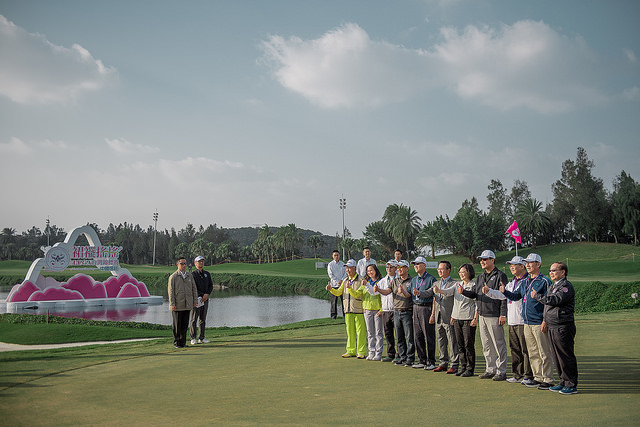 總統抵達後,由裙襬搖搖高爾夫基金會會長王政松、立法院長蘇嘉全、教育部次長蔡清華、桃園市長鄭文燦及外交部長李大維陪同步上18洞果嶺,在主辦單位為總統準備球桿及放置高爾夫球後,總統進行推桿,一桿進洞,為此次賽事的所有選手加油喝采。