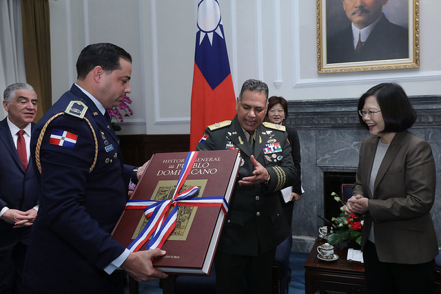 總統致詞時首先歡迎寶林諾部長再度訪問臺灣並參與軍事交流,她表示,臺灣與多明尼加在經貿、社福、基礎建設及醫療等領域,均維持密切交流與合作,其中,軍事也是非常重要的一環。
