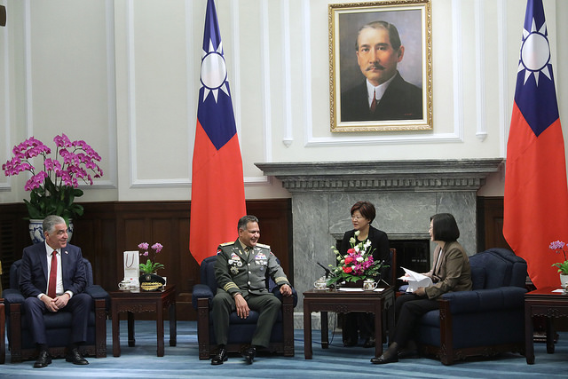 蔡英文總統今(23)日上午接見多明尼加國防部長寶林諾(Rubén Darío Paulino Sem)上將一行,除誠摯歡迎訪賓遠道來臺,並期盼雙方持續交流與合作,深化兩國情誼。
