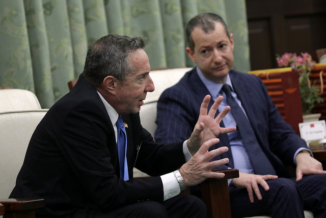 訪賓一行由「哈德遜研究所」所長兼執行長懷恩斯坦(Kenneth Weinstein)率領、外交部次長章文樑陪同,前來總統府晉見總統,總統府秘書長吳釗燮也在座。