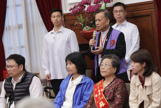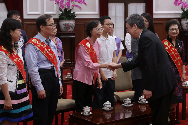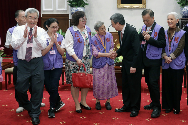 賓客一行20餘人由「中華慈光愛心會」創會會長郭楊代珍率領,衛生福利部次長呂寶靜陪同,前來總統府拜會副總統。