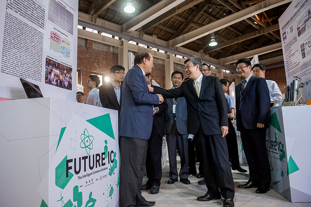 副總統抵達會場後,在科技部陳良基部長陪同下,參觀產學鏈結計畫攤位,聽取相關解說。隨後,副總統致詞表示,非常高興看到有這麼多學界教授願意走出舒適圈,帶著最尖端的技術投入創業,為臺灣的未來打拚,也很高興看到各國駐臺代表、國內外投資人對國際創業合作交流的支持。