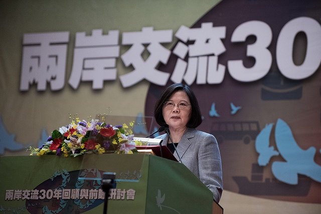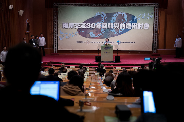 蔡英文總統今(26)日上午出席「兩岸交流30年回顧與前瞻研討會」開幕典禮,重申政府「善意不變、承諾不變,不會走回對抗老路,也不會在壓力下屈服」的原則,並再次呼籲兩岸領導人應秉持圓融、中道的傳統政治智慧,尋求兩岸關係的突破,為兩岸人民創造長久的福祉,永遠消除敵對及戰爭的恐懼。
