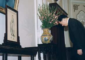 總統府今天舉行中樞紀念大成至聖先師孔子誕辰典禮,陳總統水扁先生親臨主持,會中除舉行宣誓典禮外,並聽取教育部長曾志朗的專題報告。