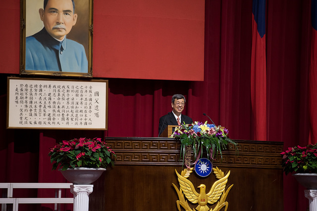 副總統致詞時表示,很榮幸參加這場盛會,能與維護治安、防災救險、保護人民具有遠大抱負的年輕人共聚一堂,內心相當興奮、也相當感動。
