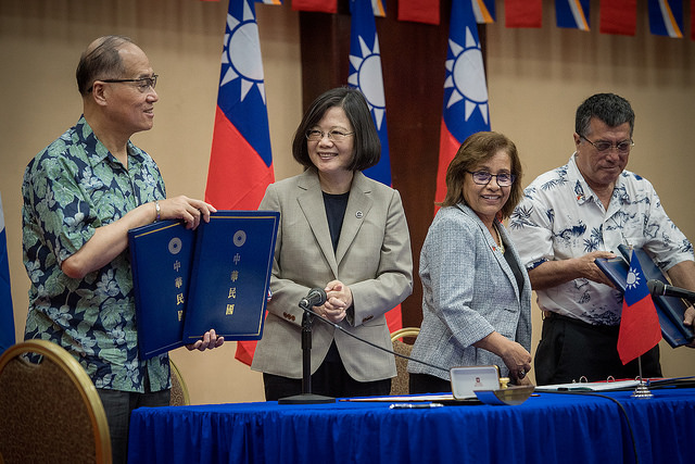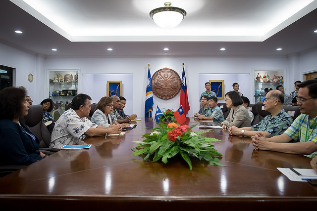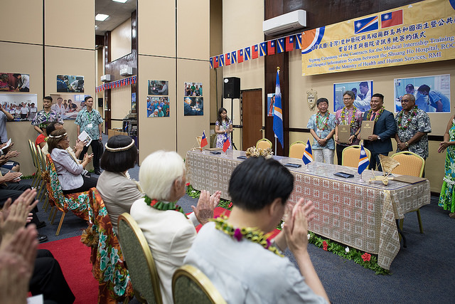 蔡英文總統率「『永續南島‧攜手共好』─2017太平洋友邦之旅」訪團於馬紹爾群島時間10月30日下午(臺北時間30日上午)於國際會議中心,與馬紹爾群島總統海妮共同見證我國外交部長李大維及馬國外交暨貿易部部長席克(John Silk)簽署「中華民國(臺灣)與馬紹爾群島共和國總統獎助學金計畫基金瞭解備忘錄」及「中華民國(臺灣)與馬紹爾群島共和國移民事務與防制人口販運合作瞭解備忘錄」。