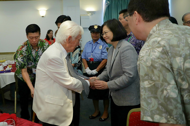 總統也說,如今許多鄉親事業有成,對在地的就業機會和經濟發展帶來重要貢獻,也積極參加駐館舉辦的活動。對於他們協助促進臺灣跟馬紹爾群島的邦誼,總統特別表達感謝。