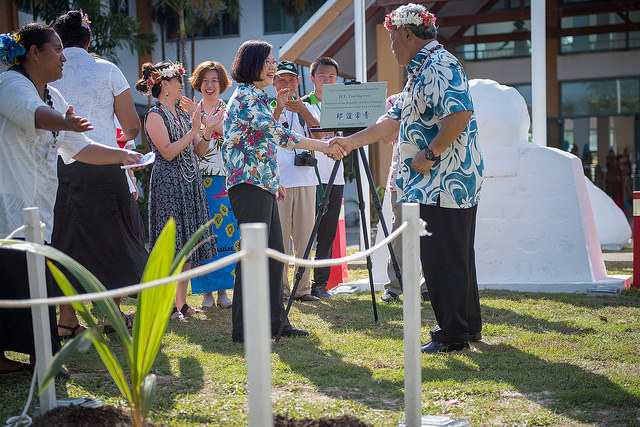 蔡英文總統於11月1日下午(臺北時間1日上午)前往吐國政府大樓出席植樹紀念儀式暨會晤索本嘉(Enele Sosene Sopoaga)總理。
