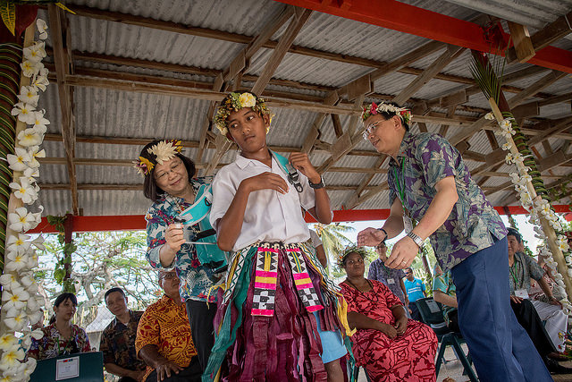 蔡英文總統率「『永續南島.攜手共好』-2017太平洋友邦之旅」訪團於11月1日(週三)下午(臺北時間1日午間)參訪Nauti小學暨瑪格麗特公主醫院。