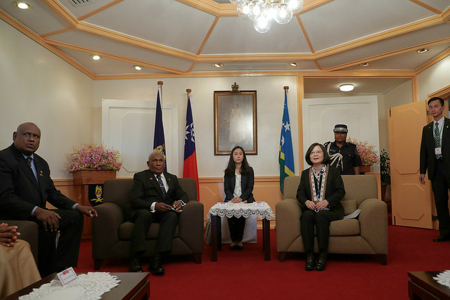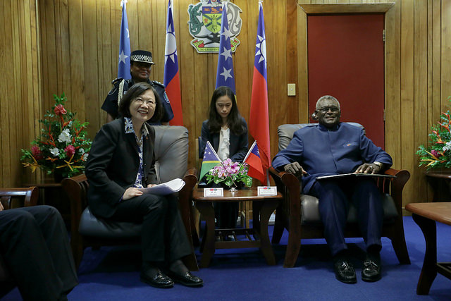 蔡英文總統率「『永續南島‧攜手共好』─2017太平洋友邦之旅」訪團於11月2日上午10時許(臺北時間2日上午7時許)會晤索國總理蘇嘉瓦瑞(Manasseh Sogavare)暨見證簽署《臺索警政合作瞭解備忘錄》。