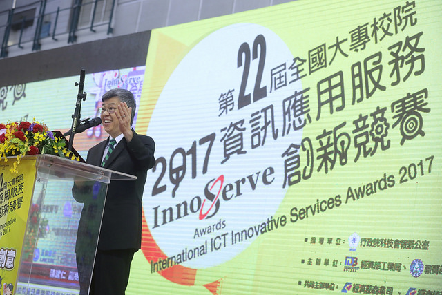 陳建仁副總統今(4)日上午出席2017「第22屆全國大專校院資訊應用服務創新競賽」,肯定主辦單位透過競賽交流搭建產學橋樑,並期勉參賽者持續發揮創意,結合社會實務需求,從今日的科技新芽,茁壯成明日智慧臺灣的棟樑之材。