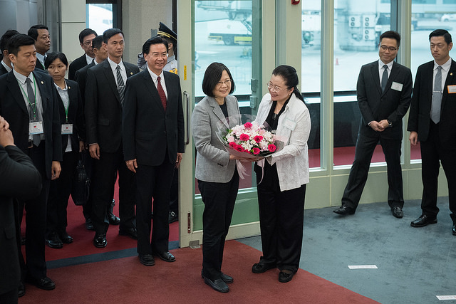 包括國家安全會議秘書長嚴德發、總統府副秘書長劉建忻、國家安全局局長彭勝竹、外交部次長吳志中、僑務委員會副委員長田秋堇、使節團團長尼加拉瓜大使達比亞(William Manuel Tapia Alemán)及馬紹爾群島共和國代表等均前來接機。