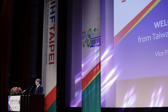 副總統致詞時表示,今(106)年是「世界醫院大會」(World Hospital Congress)第一次在臺灣舉辦,本次盛會有來自48個國家且超過850位專家參與,是一次成功的紀錄。他代表臺灣政府與人民,歡迎世界各地的醫學專家來到臺灣。