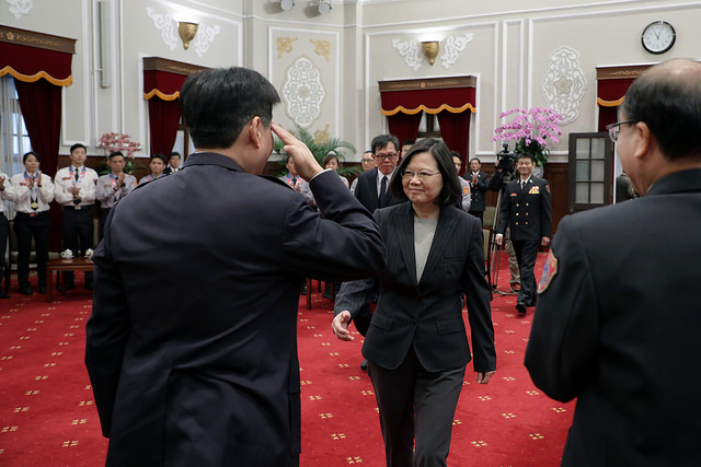 總統感謝所有警察同仁站在守護治安和協助人民的第一線,盡心盡力,保護人民;也請大家在執勤時,務必要注意安全,政府會做大家的後盾,讓臺灣更安全。
